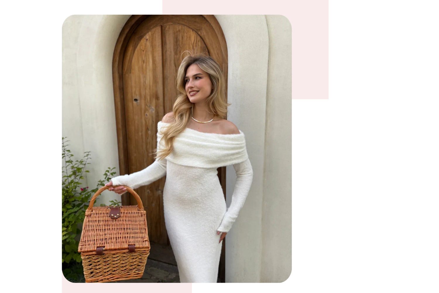 The Emily dress features a fitted silhouette with an open back and long sleeves, creating a light and playful look. This dress is perfect for both everyday wear and evening occasions.